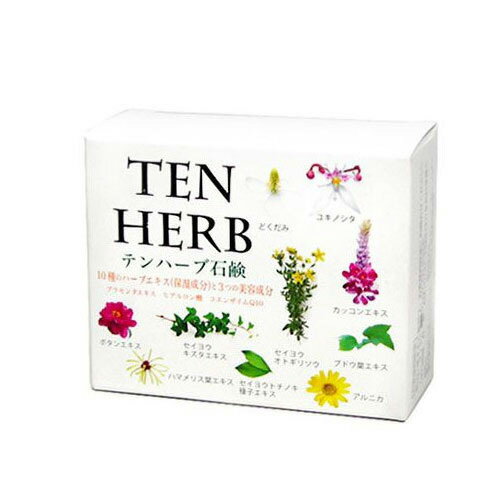 広告文責(有)イースクエアTEL:0120-532-77210種類のハーブエキスと3つの美容成分配合「TEN HERB 石鹸」は、ドクダミを始めとする保湿成分の10種類のハーブエキスと美容成分のコエンザイムQ10(ユビキノン)、ヒアルロン酸Na、プラセンタエキスを配合した化粧石けんです。