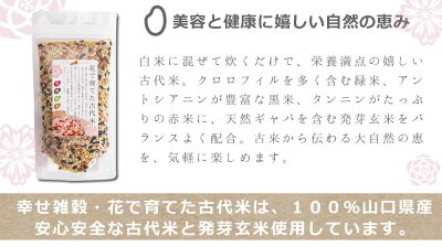 雑穀米 国産 送料無料「花で育てた古代米 3袋」発芽玄米入り お試し ポイント消化 山口県産100% メール便