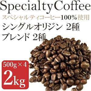 スペシャルティ コーヒー豆 おまかせ珈琲セット 4種類(ブレンド・ストレート2種類ずつ) 2kg(各500g) 送料無料